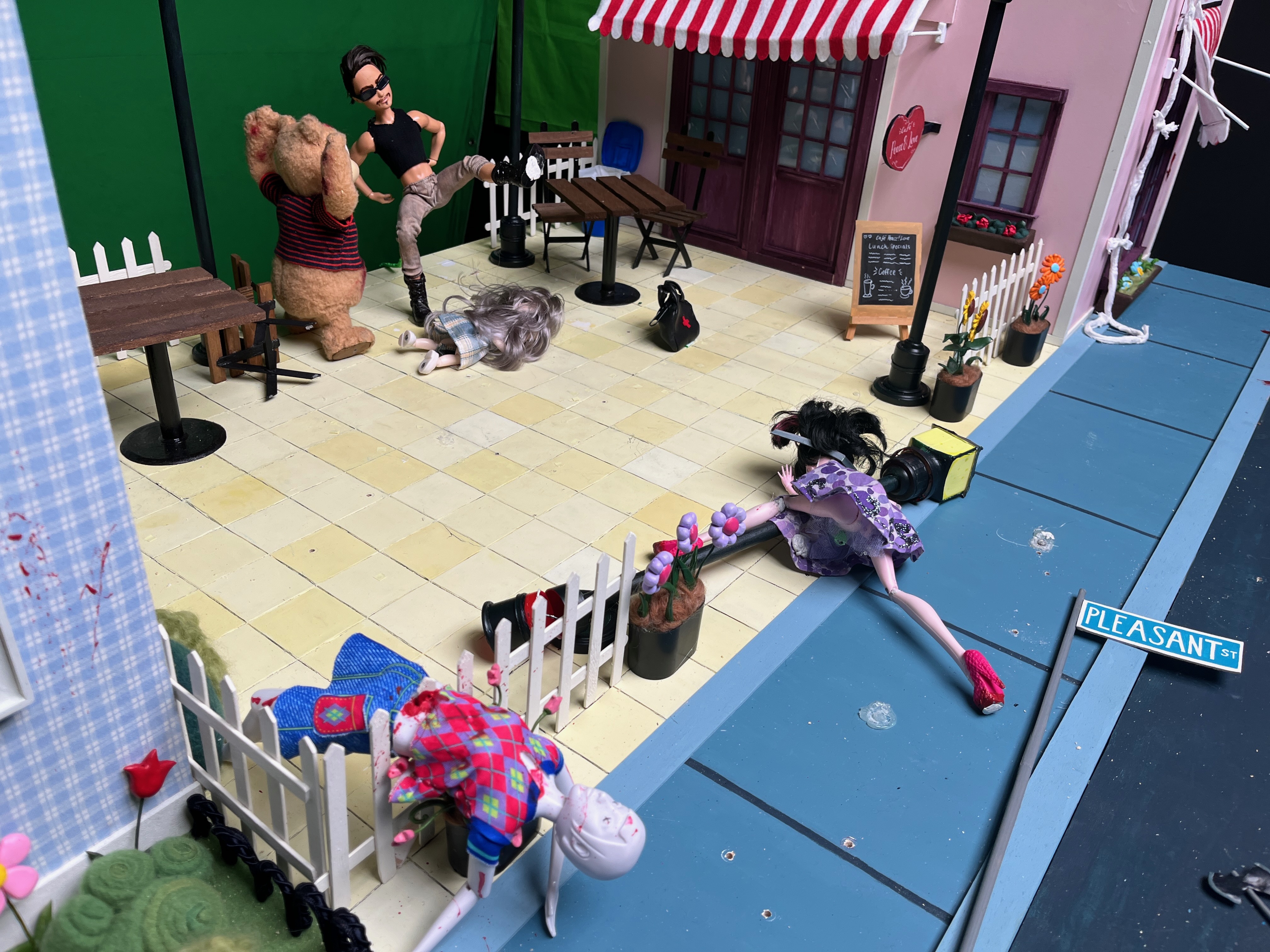 I used barbie dolls, action figures, stuffed animals and all sorts of toys from my childhood to fill the background with chaos.