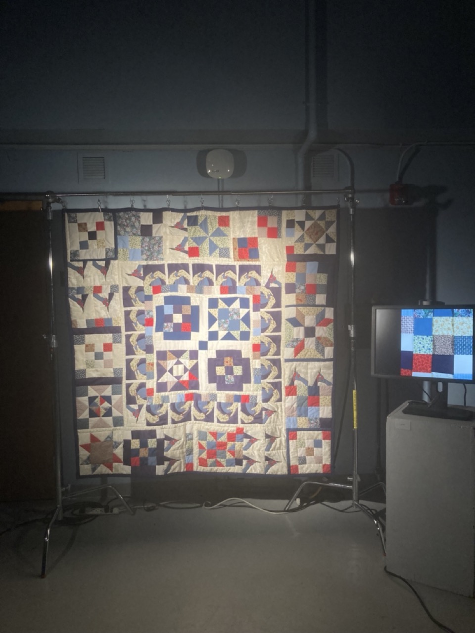 This project highlights the process of making something, in this case a quilt. The finished squares are shown from not only the front but also the back — the part of the quilt that in a finished piece would stay hidden. Because it is shown here, the film speaks about process. Each square holds within it the power to be ‘animatable’. Since the corners have different colors, when the square is rotated, it looks as though the corners are flickering. This rhythmic animation echoes the rhythmic, repetitive geometries of a quilt.