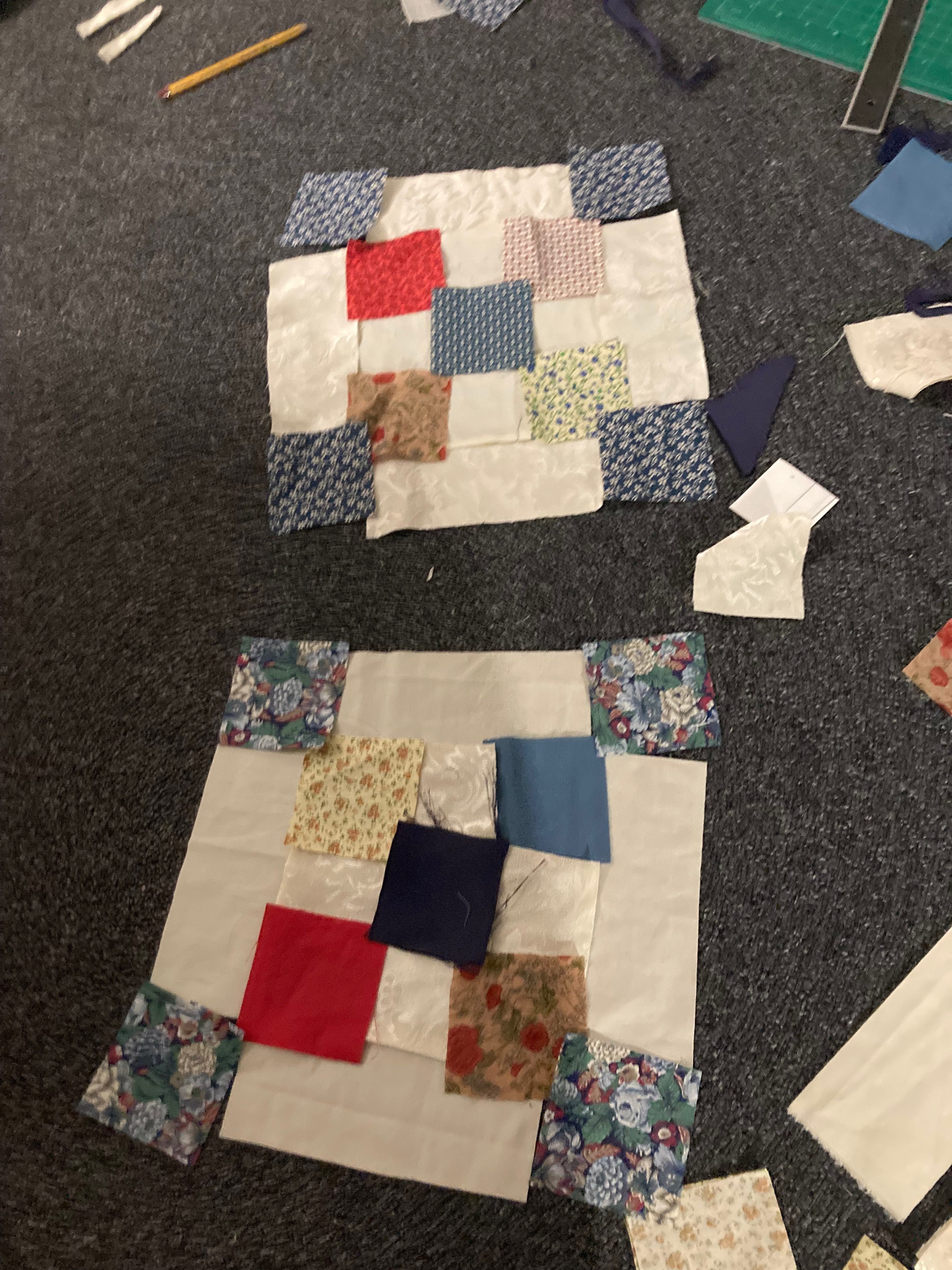 For the figurative sequences, there are 20-20 frames/quilt squares that are arranged on the quilt sequentially.